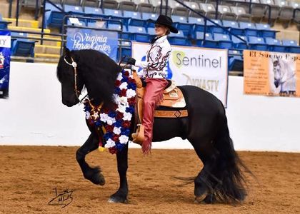 Rinse...what can we say about Rinse? He's one amazing show horse! He excels in fine harness, show driving, in hand, tandem riding, and saddleseat. This boy has MANY MANY world and national titles (I'm guessing 30+ now, but I need to verify!). In 2013 during our first year campaigning him in the IFSHA circuit, he was crowned the high point for all friesians, as well as high point driving. Many times USEF national finalist. He has a huge heart and gives it his all every ride and drive! Rinse passed away in 2024 but will never be forgotten!