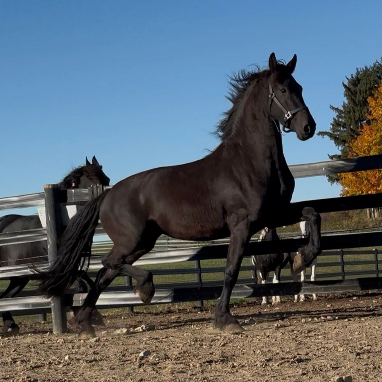 A stunning mare you don't want to miss out on! Dam is a kroon sport, sire is the king Tsjalle 454! This girl can MOVE!! At 3 years old she is ready to start in training or in the breeding barn. Very friendly with loads of potential.! Asking $25,000 obo.
